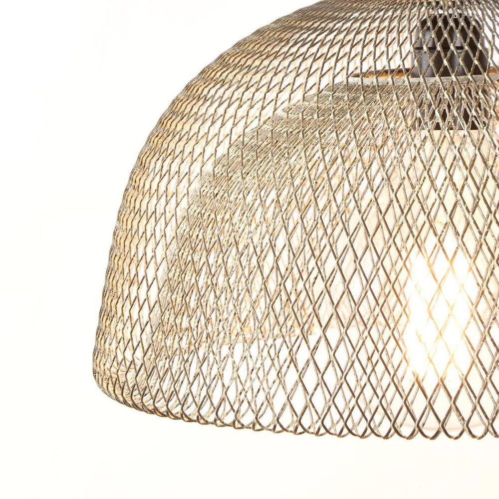 Our Valentino pendant lamp features double layer metal mesh braiding to create exciting ambience light. The light filtering inspiration of dome metal mesh. Reflecting the latest trends, this industrial mesh pendant light is perfect shade to suit any lounge, kitchen, hall or bedroom. ADDITIONAL FEATURES • Standard Australian domestic fitting • 1.5m cord height is adjustable • Lamp holder takes a standard E27 light bulb at 60 watt max [download spec sheet] Recommend Lighting Source : LED Only