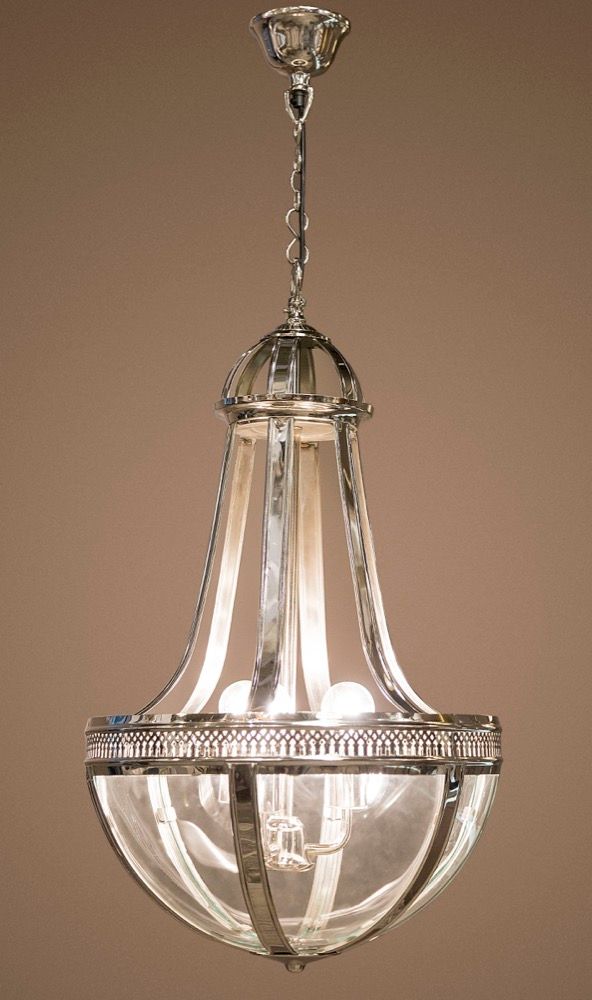 Our Doma lamp is our tear drop lantern shape covered with clear glass panels and finished in shiny nickel or antique brass finish. This stunning prism pendant is bound to influence any surrounding with its shape and wonderful light. The Doma is perfect for kitchen island or dining table and paired together to be hung in a row at the same height. Elegant in its simplicity, this Doma ceiling light is also suitable for entry foyers and will share its qualities with vanities and lounges. ADDITIONAL FEATURES • Standard Australian domestic fitting • Ceiling rose has a matching finish with the base • 1.5m chain and cord height is adjustable • Lamp holder takes a standard E27 light bulb at 60 watt max Please note that most glass components are handmade and therefore small air bubbles, slight defects and colour variations may naturally occur during the glassblowing process. [download spec sheet]