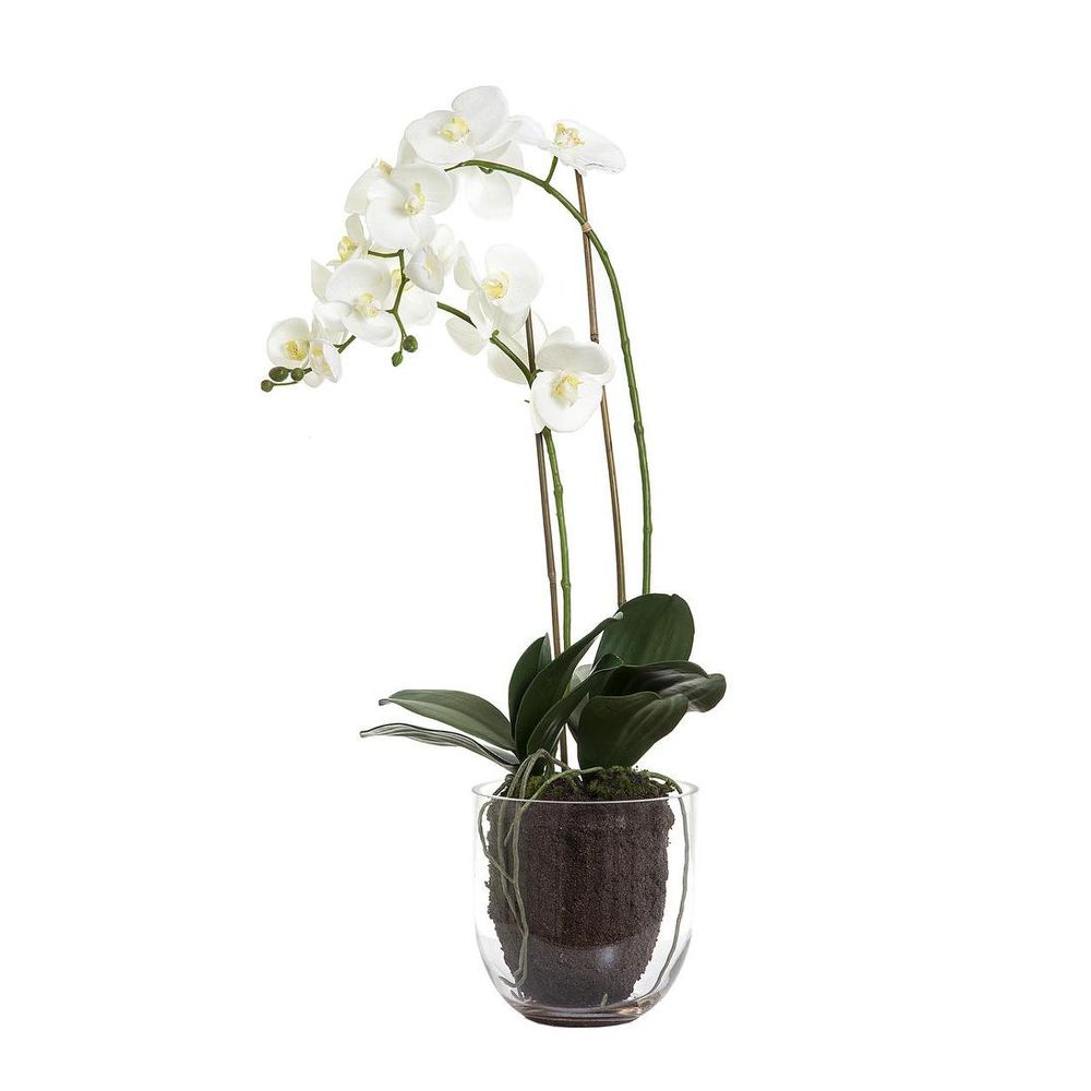 Watch your space come alive with our lifelike Orchid in Glass Vase, a harmonious blend of delicate petals and verdant foliage. Standing tall, this lifelike orchid features delicate white petals delicately contrasted against lush green foliage, all nestled in a clear glass vessel. Perfect for adding a touch of timeless elegance to any space, from your living room to your office reception area.