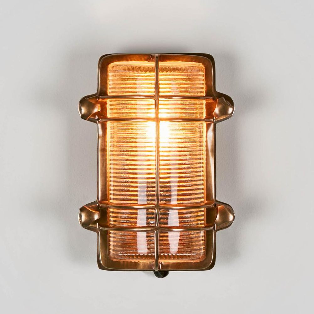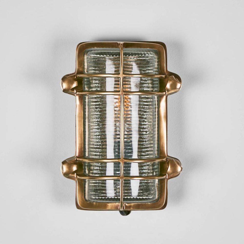 Our Harley wall light is IP-rated 54 outdoor wall sconce with clear rib glass and brass metal cage, which suitable for indoor and outdoor use. The wall mount makes it perfect décor for outdoor garden lamp, patios and entryways. The light is well built and solid, also anti-rust. It can also be installed vertically or horizontally position. With sleek appearance, it can also be used in bathroom as side mirror lights to match any industrial, rustic or loft-style décor. ADDITIONAL FEATURES * The lamp holder takes E14 globe max 40w * IP-rated 54 certified suited for outdoor use * Standard Australian domestic fitting * Crafted from solid brass with seamless design Please note glass components are handmade and therefore small air bubbles, slight defects and colour variations may naturally occur during the glassblowing process. [download spec sheet] Recommend Lighting Source : LED Only