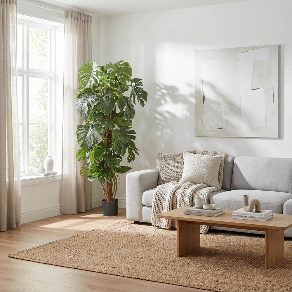 Introduce a touch of natural splendor to your indoor space with our artificial Split-Leaf Philodendron. This exquisite faux potted plant not only adds a refreshing greenery but also enhances mood and motivation. With its low-maintenance nature, there's no need for watering, fertilizers, or pruning, making it a cost-effective solution for botanical charm. Its hypoallergenic properties ensure a comfortable environment indoors, free from any side effects. With no assembly required, simply dust it with a static feather duster to keep it looking pristine.