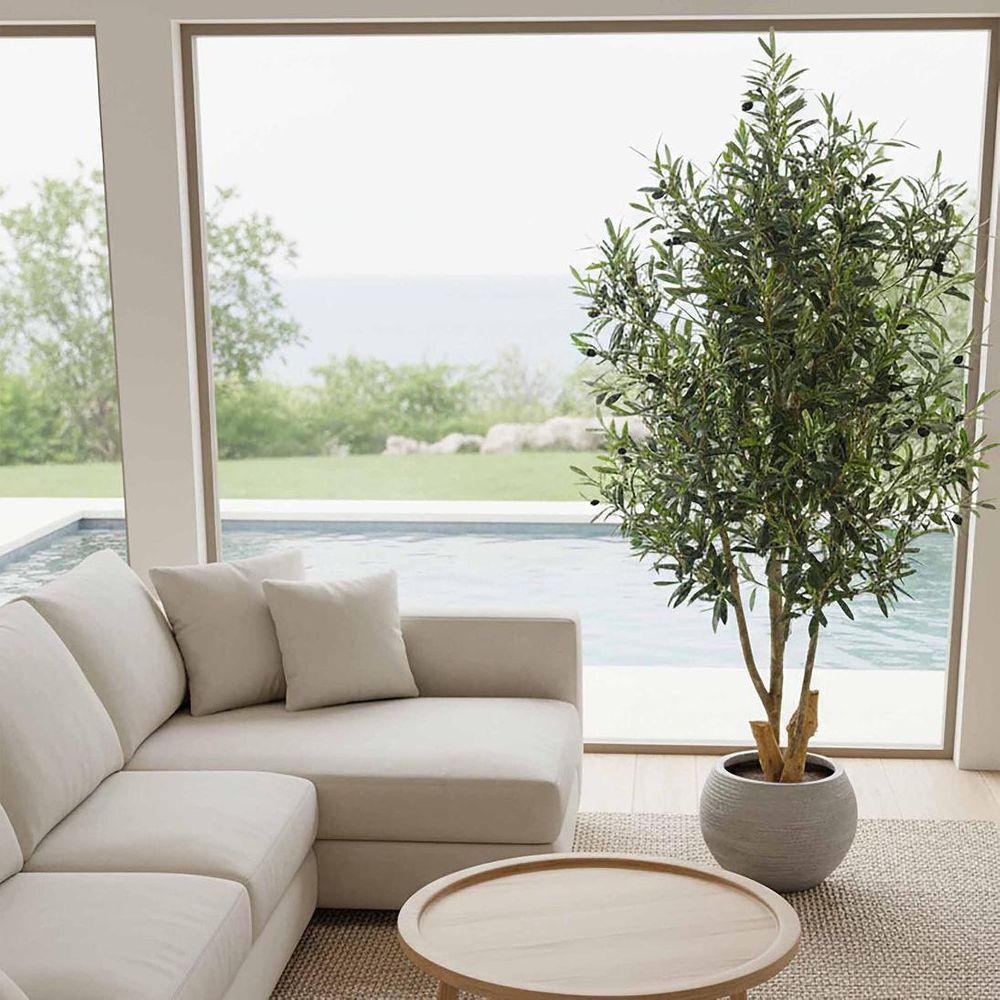 Infuse your space with the allure of Tuscany through our artificial Olive Tree. Whether adorning hotel lobbies, quaint cafes, or personal sanctuaries like home offices or courtyards, this lifelike creation introduces rustic elegance effortlessly. Its sturdy trunk, featuring textured bark, supports an abundance of green-silvery leaves and black olives. Enjoy the calming benefits of biophilic design without all the costs and hassle of maintenance, as this tree requires minimal assembly and just a gentle dusting to keep it looking fresh and vibrant. Disclaimer: To assist you in selecting the right planter size, the diameter of the tree pot ranges from 15-30 cm. Please ensure your chosen pot, planter, or urn has a larger diameter. Additionally, please note that the height of the trees may vary depending on the tree leaves. If you need more precise guidance, feel free to contact us, and we’ll be happy to provide you with exact measurements and assist you further