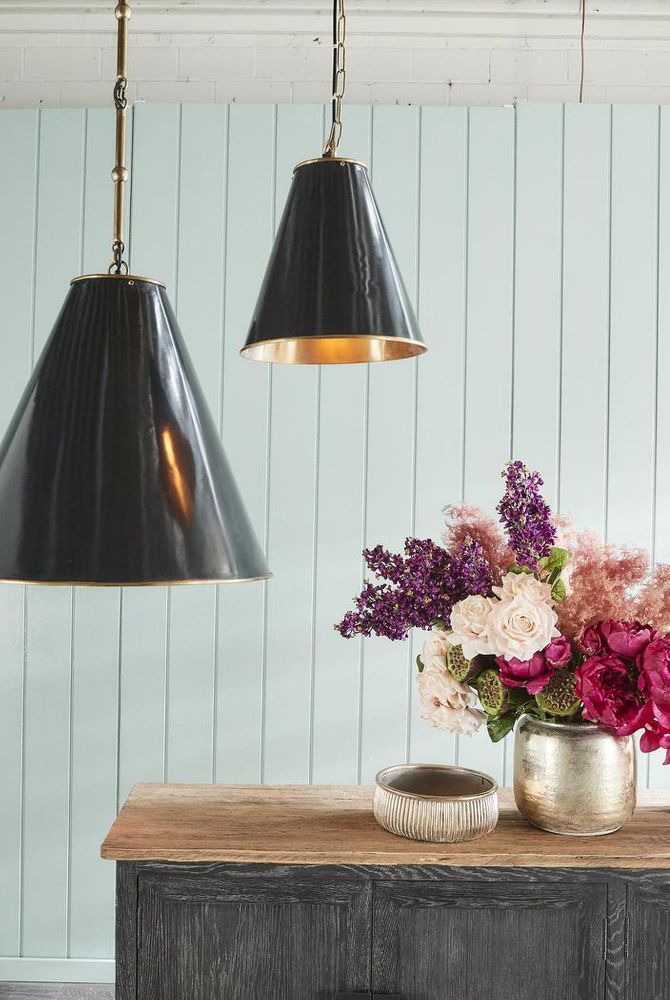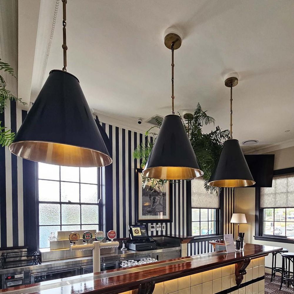 Monte Carlo is oversized pendant light with cone shaped shade in trendy modern colours and standout look. We recommend to hang two over your kitchen island or a long dining table. The brass lining inside gives warm ambience lighting to a directed overhead light effect to any space. Two sizes are available, large and small. The large one comes with 78 cm rod, length of the suspension is not adjustable. ADDITIONAL FEATURES • Standard Australian domestic fitting • Ceiling rose has a matching finish with the base • Lamp holder takes a standard E27 light bulb at 60 watt max [download spec sheet] Recommend Lighting Source : LED Only