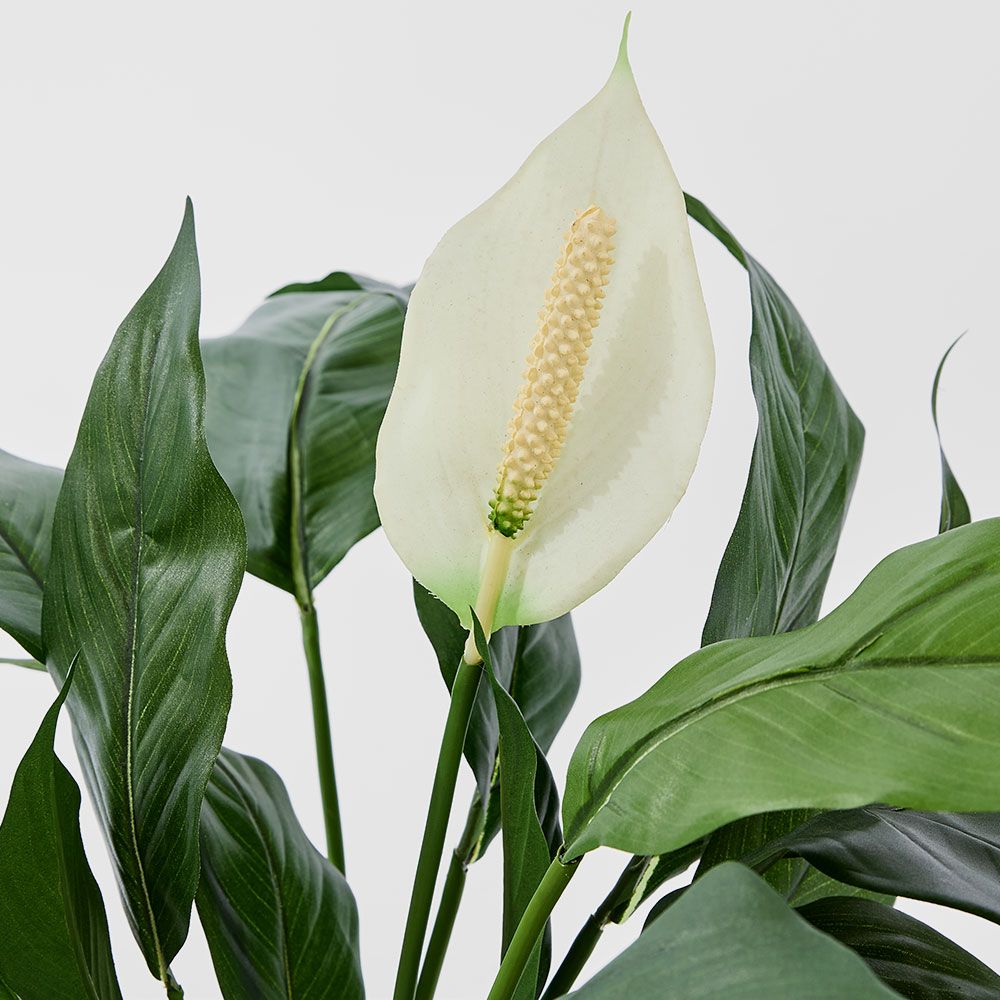 Let peace, love, and leafiness all roll into one fabulous package with our artificial Spathiphyllum Lily in White. With its lush leaves and delicate spathes, this plant brings a touch of botanical chic to any space. Plus, it's low maintenance, hypoallergenic, and ready to boost your mood and motivation with its biophilic design. No watering, no pruning, just pure green goodness – all in one fabulous package. So go ahead, let the peace bloom effortlessly in your home.