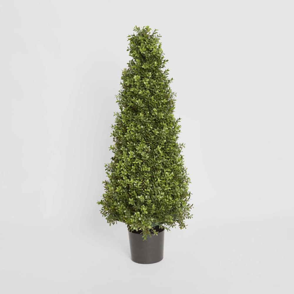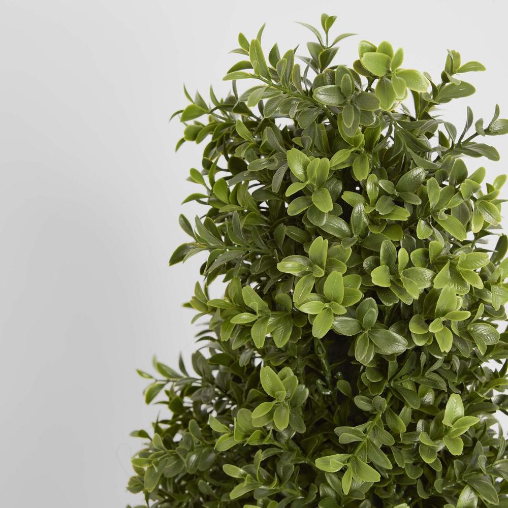 Prepare for a foliage fiesta with our artificial Boxwood Pyramid Tree, the epitome of green geometry and botanical brilliance. Crafted with dense, vibrant green foliage arranged in a striking pyramid shape, this faux masterpiece is made with cutting-edge technology, so realistic, you'll have to resist the urge to water it. Plus, its hypoallergenic nature means you can enjoy its mood-boosting vibes without any sneezy side effects. And with no watering, pruning, or wilting to worry about, maintaining this marvel is as easy as a flick of a feather duster. Disclaimer: To assist you in selecting the right planter size, the diameter of the tree pot ranges from 15-30 cm. Please ensure your chosen pot, planter, or urn has a larger diameter. Additionally, please note that the height of the trees may vary depending on the tree leaves. If you need more precise guidance, feel free to contact us, and we’ll be happy to provide you with exact measurements and assist you further