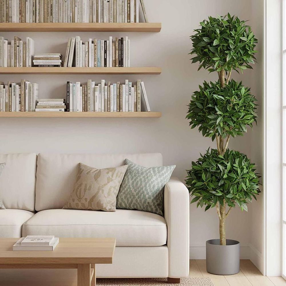 Triple the fun and triple the charm with our artificial Sweet Bay Triple Ball Tree, featuring three dense balls of glossy, dark green foliage perched atop a single trunk. Thanks to cutting-edge technology, it's so realistic, you'll be tempted to water it. Plus, its hypoallergenic nature means you can enjoy its mood-boosting vibes without any sneezy side effects. And with no watering, fertilizers, or pruning required, maintaining this marvel is as easy and cost-effective as a flick of a feather duster. Say goodbye to wilting woes and hello to endless botanical bliss. Disclaimer: To assist you in selecting the right planter size, the diameter of the tree pot ranges from 15-30 cm. Please ensure your chosen pot, planter, or urn has a larger diameter. Additionally, please note that the height of the trees may vary depending on the tree leaves. If you need more precise guidance, feel free to contact us, and we’ll be happy to provide you with exact measurements and assist you further