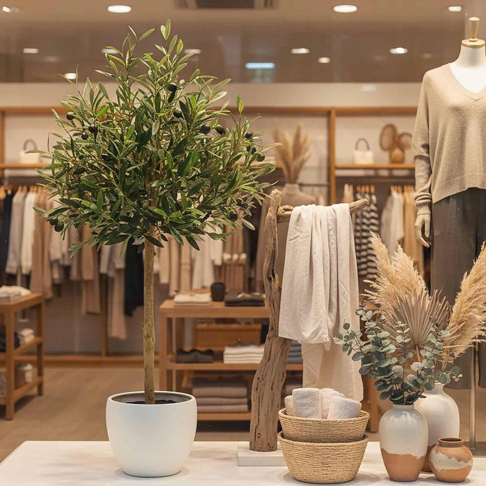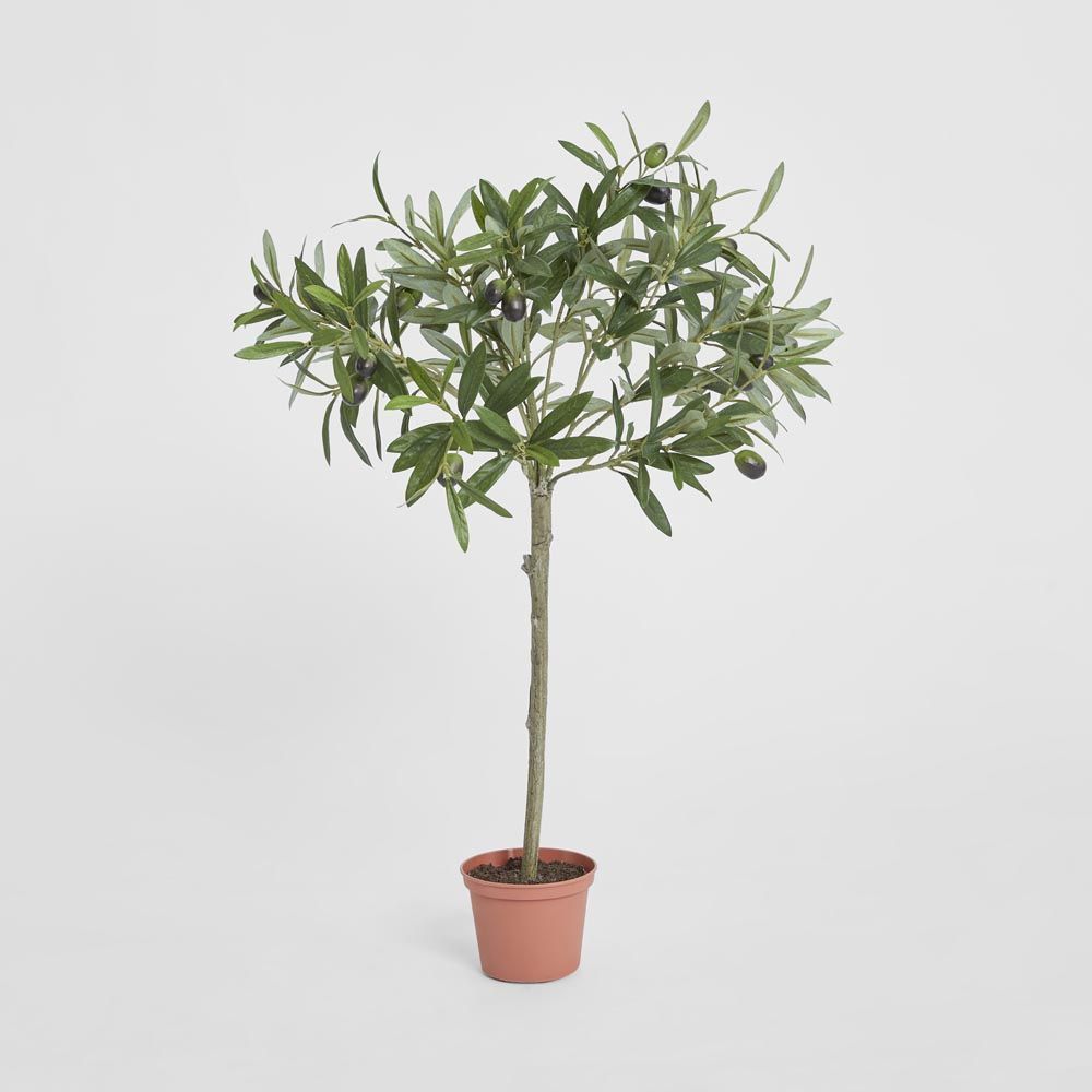 Transform your décor into a Tuscan treasure trove with our artificial Olive Topiary. Whether adorning hotel lobbies, cozy cafes, or personal retreats like home offices or courtyards, this tree effortlessly introduces rustic charm. Supported by a sturdy trunk featuring textured bark, it flaunts an abundance of silvery green leaves and black olives. Enjoy the calming effects of biophilic design without the associated maintenance costs and hassle. With minimal assembly necessary, a gentle dusting is all it takes to uphold its fresh and vibrant allure.