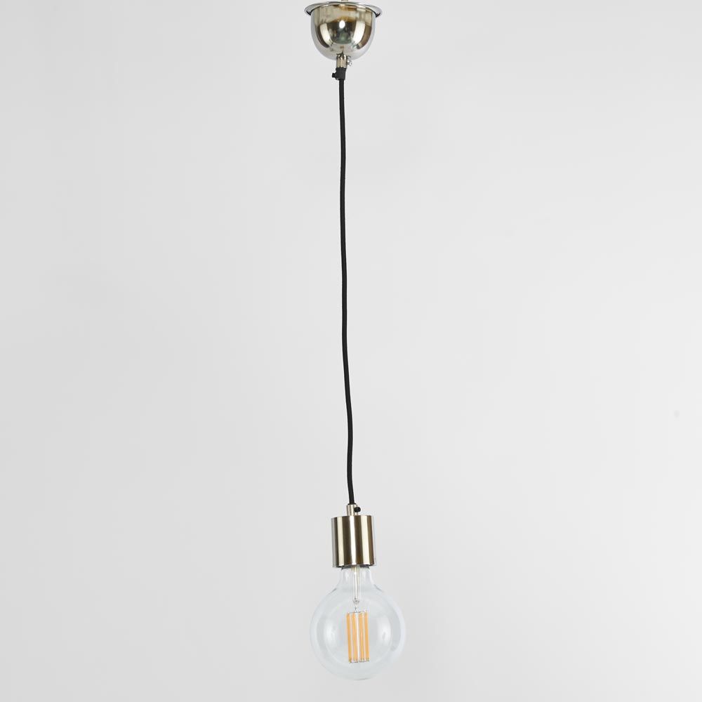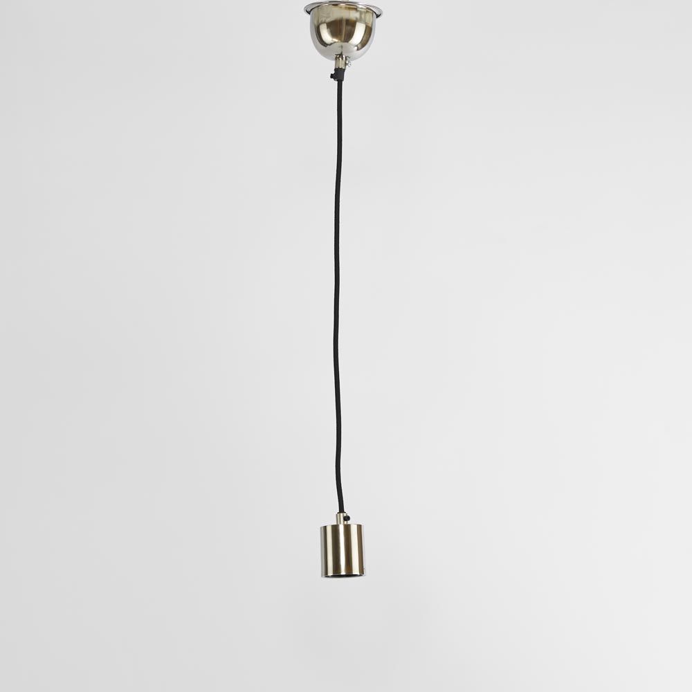 A contemporary metal cord drop featuring fabric covered cord, and complete with ceiling fixture.