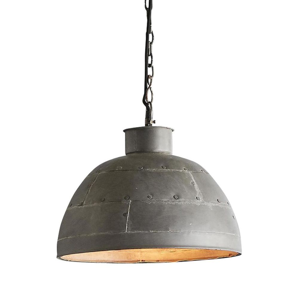 A riveted dome pendant in two rustic finishes. This pendant is designed to patina over time for a vintage aesthetic.