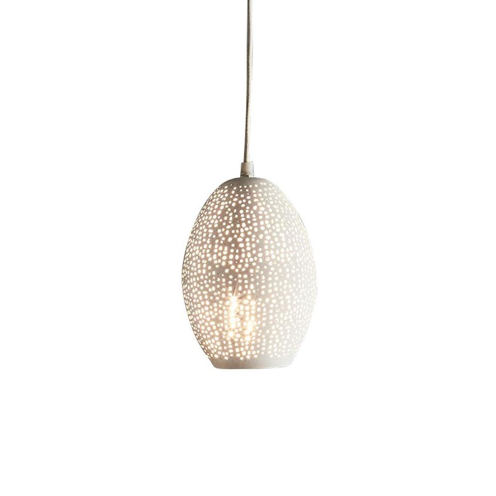 The stella is a white lozenge shaped pendant with delicate perforations for a wonderful glow.