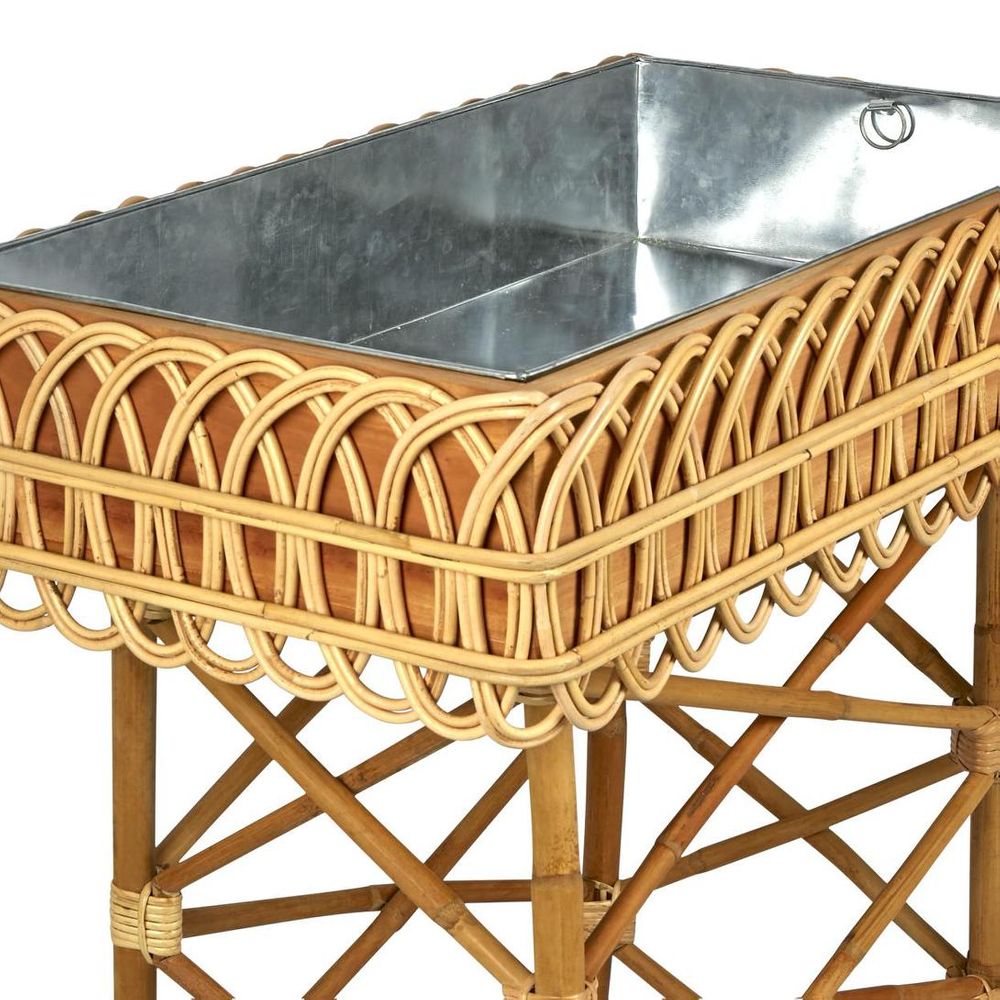 Our portable rattan potting table is perfect for your real touch florals or plants. Designed to be utilised at standing height, add an element of chic to your floral prowess. The interior is lined with galvanised iron, which is removable to allow ease of cleaning. Our potting table could also double as a bar accessory for your next party - fill it up with ice and Voila! will keep your drinks cool and look good too.