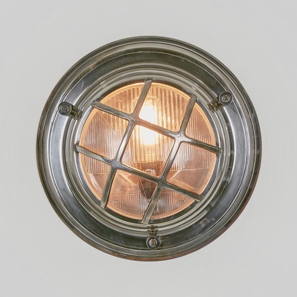 Our Jervis outdoor wall lamp is marine nautical wall light with opal plexiglass cover with clear rib glass that adds nautical charm into indoor or outdoor industrial style space. This nautical lighting is perfect to install at beach front properties or pool houses, to illuminate outdoor areas like porches and patios as well as for home’s interior design, brightening hallways and bathrooms. This metal industrial flush mount lighting fixture is also perfect for urban homes, restaurants, bars and hotels. ADDITIONAL FEATURES * The lamp holder takes E27 globe max 40w * IP-rated 54 certified suited for outdoor use * Standard Australian domestic fitting * Crafted from solid brass with seamless design * Projection: 11cm Please note glass components are handmade and therefore small air bubbles, slight defects and colour variations may naturally occur during the glassblowing process. [download spec sheet]