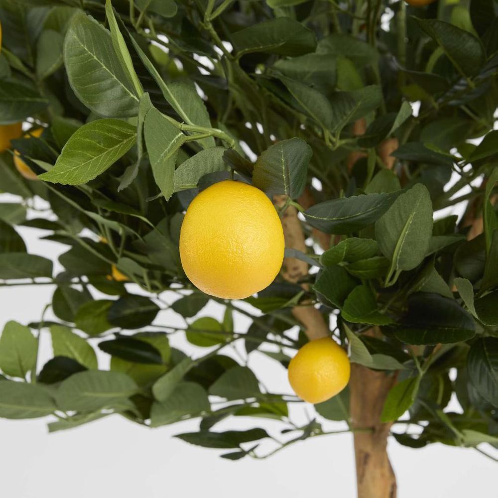 Add a zestful touch to your space with our artificial Golden Lemon Tree, boasting glossy green leaves and vibrant yellow lemons. Embrace biophilic design for mood and motivation boost, minus the upkeep. No watering, fertilizers, or pruning needed – it's cost-effective and hypoallergenic. Plus, no assembly required; just dust with a static feather duster for forever freshness. Disclaimer: To assist you in selecting the right planter size, the diameter of the tree pot ranges from 15-30 cm. Please ensure your chosen pot, planter, or urn has a larger diameter. Additionally, please note that the height of the trees may vary depending on the tree leaves. If you need more precise guidance, feel free to contact us, and we’ll be happy to provide you with exact measurements and assist you further