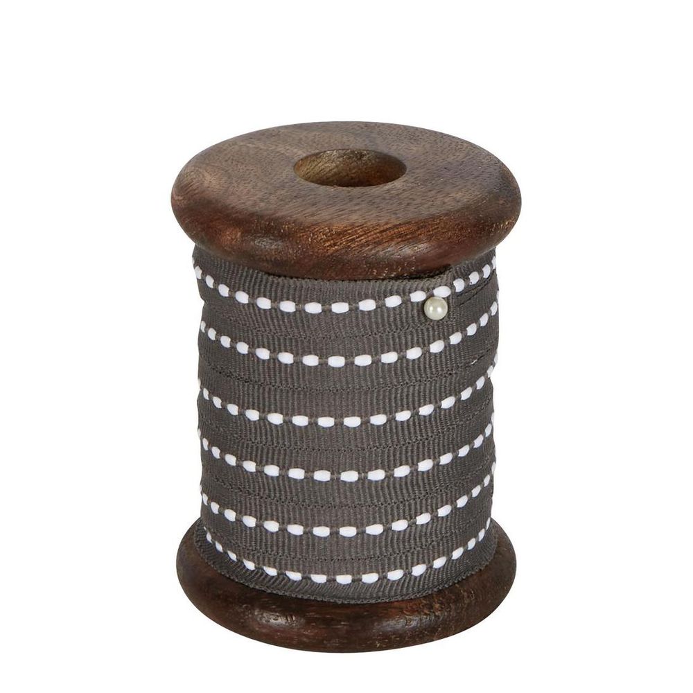 Grey Ticking Grosgrain Ribbon On Wooden Spool 10m