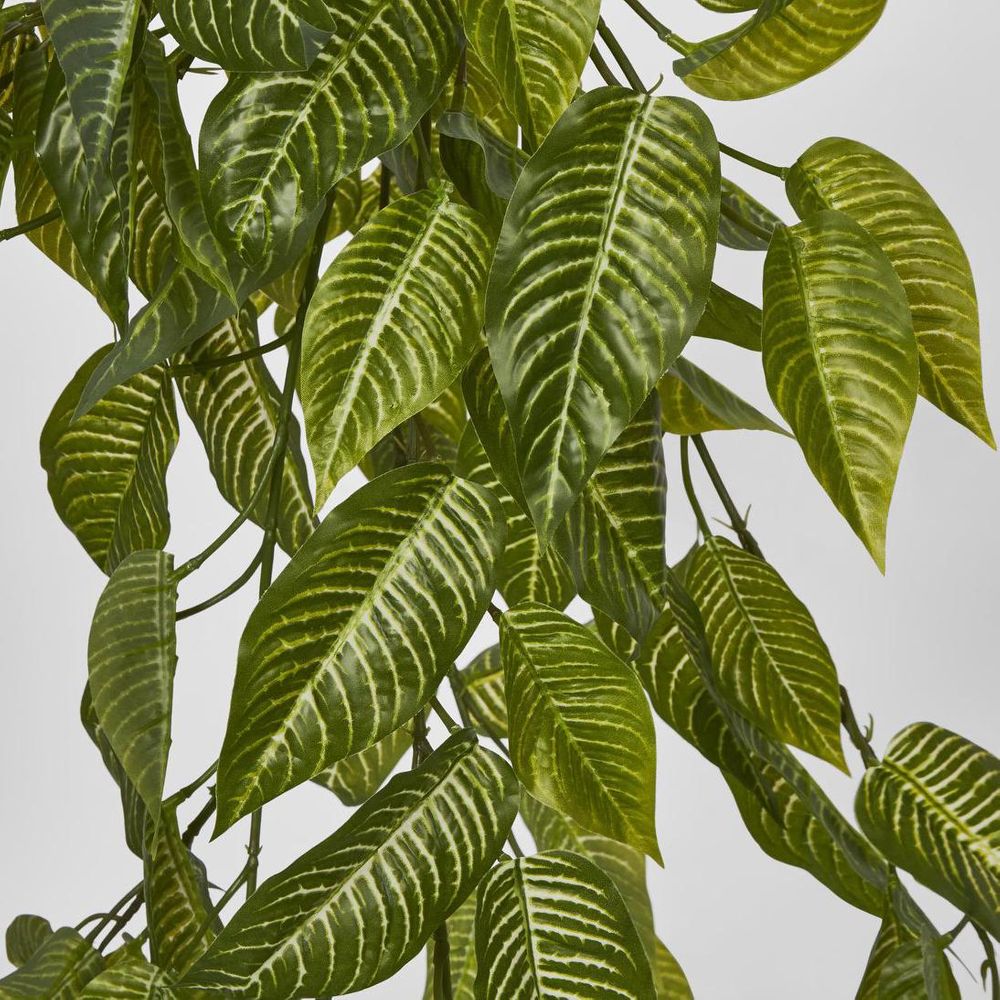 Dive headfirst into the jungle of interior design with our artificial Zebra Hanging Bush, a daring statement piece that's sure to turn heads. Its lush green leaves, decked out with bold white striping, create a mesmerizing visual feast that demands attention. It's the perfect embodiment of biophilic design, boosting your mood and motivation with its wild charm. Hassle-free and hypoallergenic, so you can enjoy the exotic vibes without any side effects. Just hang it up and let the adventure begin! Whether it's adding flair to your office, jazzing up a storefront, or setting the scene for a garden party, this zebra bush is your ticket to untamed elegance.