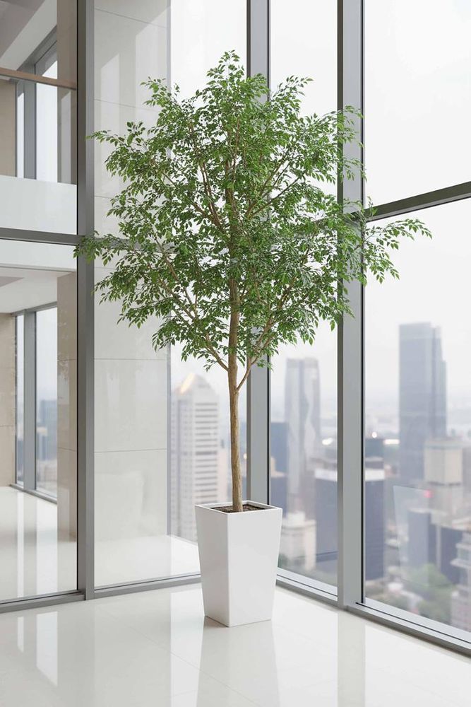 Have your own personal forest in a pot with our faux Ficus Natasja Giant Tree, a cost-effective solution that effortlessly brings the calming, biophilic benefits of nature indoors. Adorned with a breathtaking array of lush, green leaves, this lifelike tree serves as a practical and hypoallergenic choice, ideal for transforming your office atrium, hotel lobby, or event space into a verdant retreat. Plus, with no assembly required and easy maintenance, just a simple dusting with a static feather—enjoying the beauty of nature has never been easier. Disclaimer: To assist you in selecting the right planter size, the diameter of the tree pot ranges from 15-30 cm. Please ensure your chosen pot, planter, or urn has a larger diameter. Additionally, please note that the height of the trees may vary depending on the tree leaves. If you need more precise guidance, feel free to contact us, and we’ll be happy to provide you with exact measurements and assist you further
