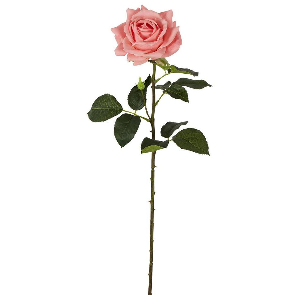 Inject a bolt of botanical brilliance into your space with our Belle Real Touch Rose Stem. Each stunning stem boasts fully bloomed flower with ruffled petals in a romantic pink hue, paired with a stem adorned with dark green serrated leaves. Perfect for showcasing solo in a delicate bud vase or as a captivating filler in larger arrangements, it adds a touch of drama and elegance to tables, mantelpieces, desks, or as a striking centerpiece for weddings and special occasions.