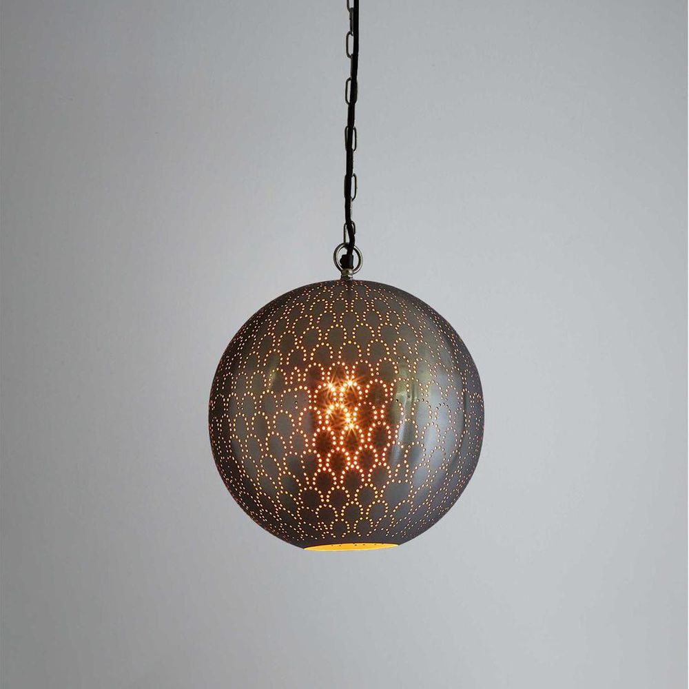 Prepare to be mesmerized by the Mamba Ceiling Pendant in Nickel, a luminary masterpiece adorned with intricate scale patterned perforations. Casting mesmerizing shadows, this round pendant transcends mere illumination to become a captivating art piece in your space. Whether suspended above a dining table, in a cozy corner, or gracing a stylish commercial setting, let its elegant allure elevate every moment with sophistication and grace.