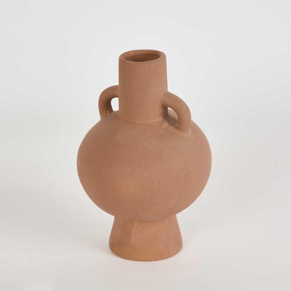 Indulge in the timeless allure of our Safa Vase, a masterpiece with a sleek, rounded design and graceful handles. Effortlessly complementing various decor styles with its natural terracota inspired hue, Safa stands as a versatile addition to your home or office. Whether gracing your entryway or living room, this aesthetic vase serves as a stunning centerpiece on its own or a vessel for captivating floral arrangements, bringing a touch of sophisticated charm to any setting. non-vitrified/porous