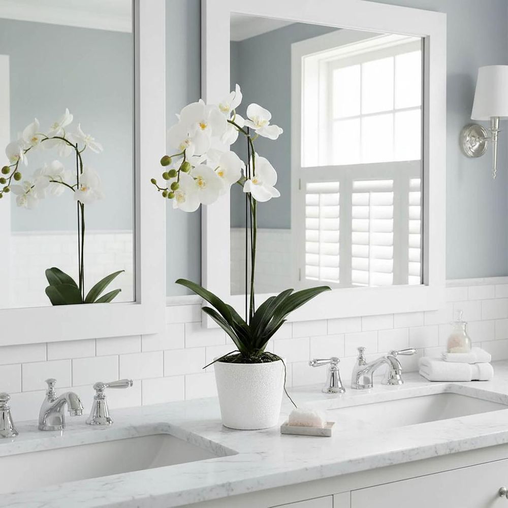 Watch your space come alive with our lifelike Orchid in Clay Pot. Standing tall, this lifelike orchid features delicate white petals delicately contrasted against lush green foliage, all nestled in a classic white clay pot. Perfect for adding a touch of timeless elegance to any space, from your living room to your office reception area.