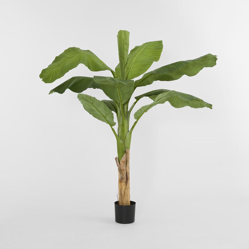 Experience the regal beauty of our faux Royal Banana Tree. Nestled in a sleek black pot, this lifelike tree infuses any indoor space with an exotic allure, from intimate living rooms to bustling event venues, evoking the ambiance of a lush paradise wherever it resides. Enjoy the mood-boosting benefits of biophilic design and the convenience of low maintenance, all without the hassle of watering, fertilizers, or pruning. Plus, its hypoallergenic properties ensure a worry-free indoor environment. No assembly required—just a simple dusting with a static feather duster to keep it looking pristine. Disclaimer: To assist you in selecting the right planter size, the diameter of the tree pot ranges from 15-30 cm. Please ensure your chosen pot, planter, or urn has a larger diameter. Additionally, please note that the height of the trees may vary depending on the tree leaves. If you need more precise guidance, feel free to contact us, and we’ll be happy to provide you with exact measurements and assist you further