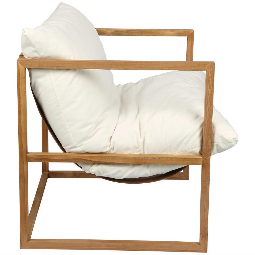 What's not to love, a minimal teak frame with hand-stitched leather strapping supporting a sling seat with a covered cushion. The fabric is 100% Olefin for the ultimate layer of luxury and comfort, and at the same time hardwearing and easy to clean. The one-piece seat and back cushion is fibre filled, giving that soft comfortable sink-in feeling. ADDITIONAL INFORMATION Sungkai is a sustainable plantation timber native to Indonesia used extensively in furniture making due to its inherent strength.The elegant grain and natural light tone makes it perfect for the contemporary coastal designs in the MRD Home range.Hand painted resulting in an elegant matt satin finish. CARE INSTRUCTIONS Like all natural timbers Sungkai furniture should be kept out of direct sunshine for extended periods of time. Do not expose the surface to liquids or excessive moisture. Wipe with a damp cloth to clean.