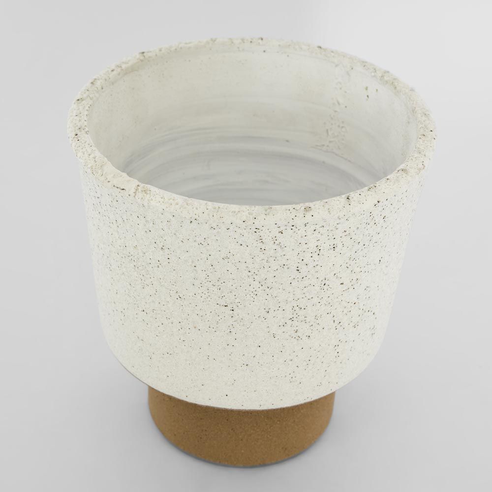 chic handmade terracotta and speckled, textured glaze on tough stoneware, mix and match with items in the Robbie, Pivet & Bolero ranges. Coming in January 2023. 200 x 200 x 230 mm high stoneware ceramic with textured terra cotta base and speckled glaze top product is not waterproof