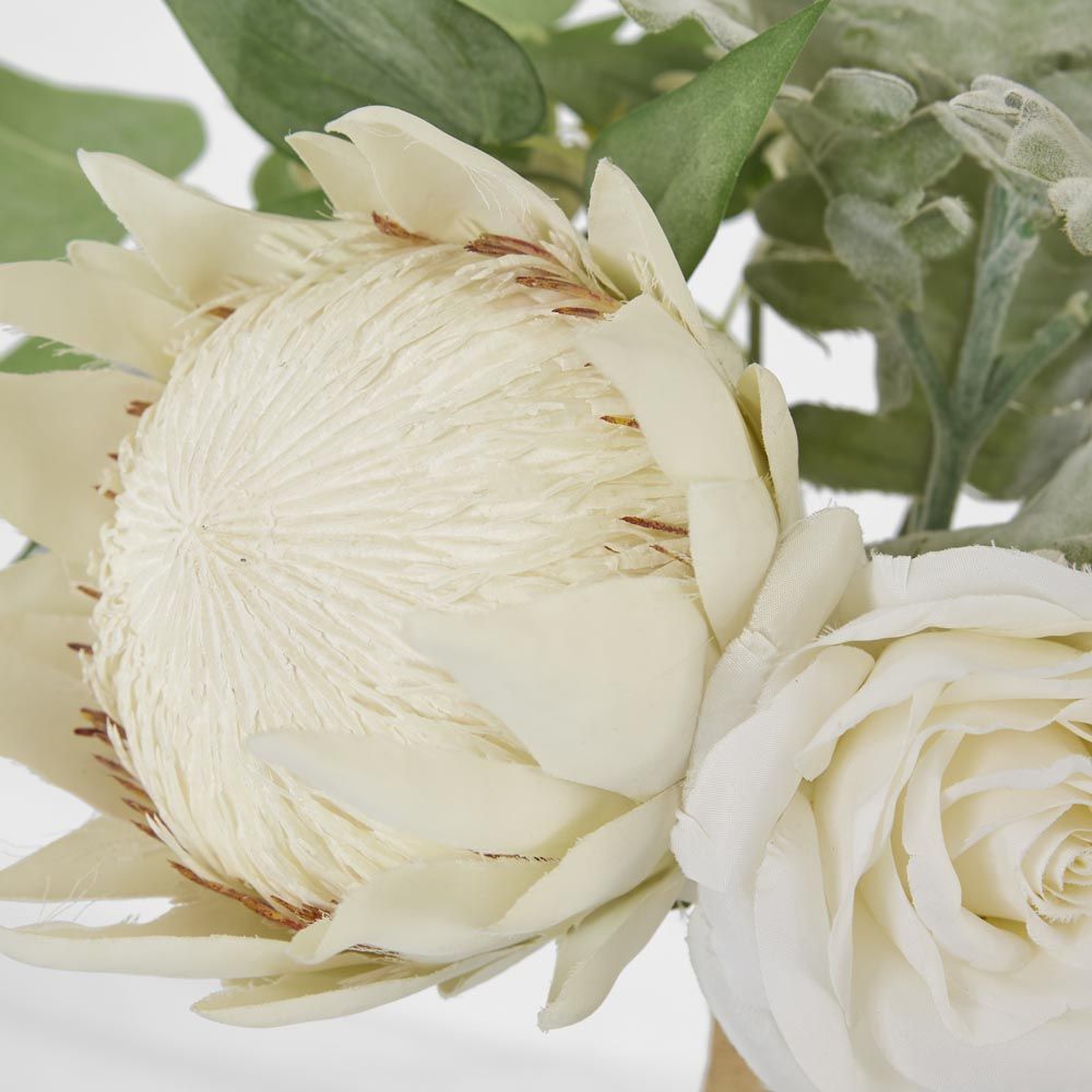 Protea Rose Dusty Miller Mix Bouquet 40cm White