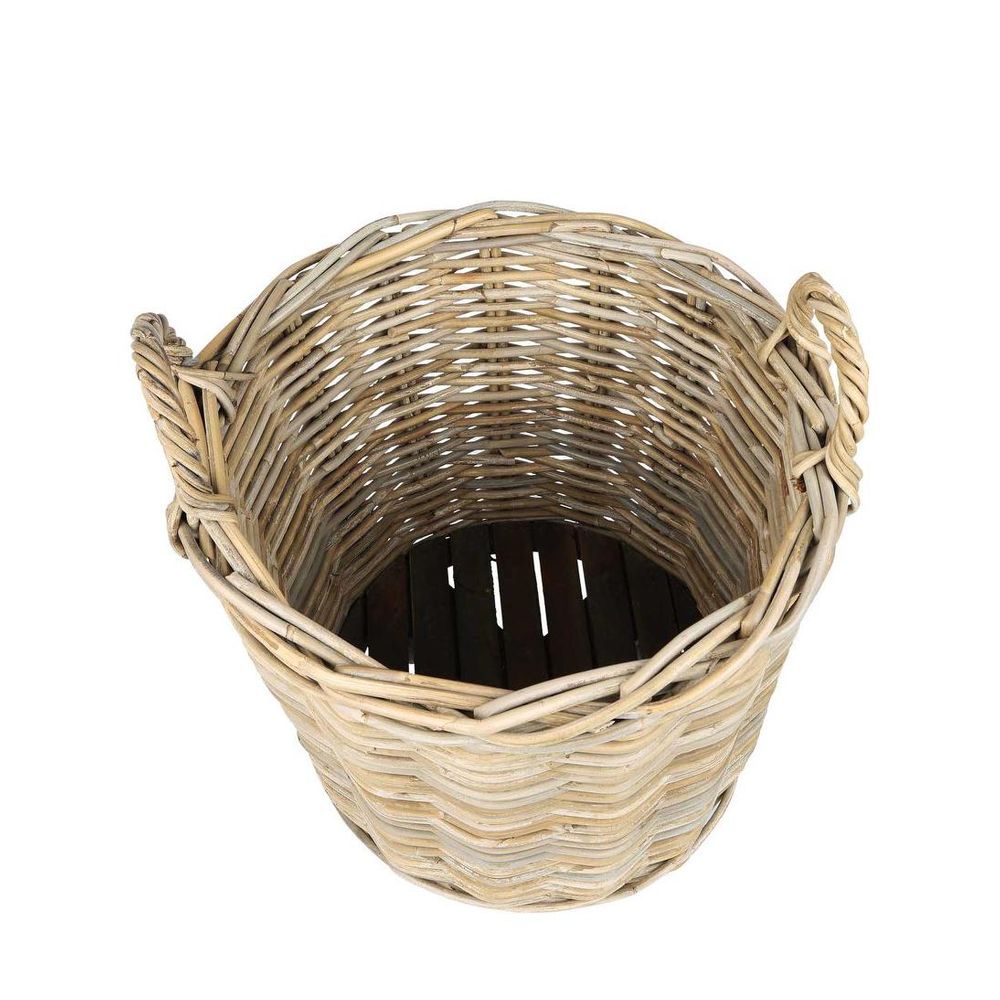 Turn storage into a tasteful experience with our Keto Small Basket, a stylish answer to tidying up, embellishing, and infusing a touch of rustic charm into compact spaces. Crafted from weathered rattan, this petite round gem with handles serves various roles, functioning as a chic laundry hamper, decorative accent, or even a fashionable planter. Ideal for smaller areas like the entryway, living room nooks, or a cozy porch.