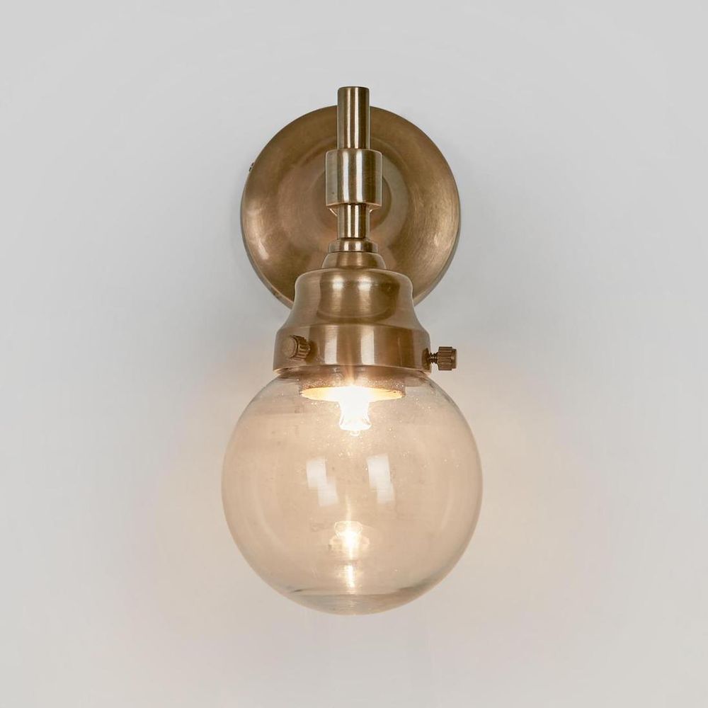 Our Iceberg outdoor wall light in antique brass is a stylish and functional lamp designed for outdoor use. The lamp features a solid brass construction, which ensures durability and longevity even in harsh weather conditions. The antique brass finish gives the lamp a classic and timeless appearance. The lamp has a glass round shape and is attached to a wall mount that allows it to be fixed securely to a wall. The light source is enclosed within a clear glass shade that bright the light, creating a warm and inviting ambiance. This lamp is suitable for use in a variety of outdoor settings, including porches, patios, and gardens. It can be used to illuminate outdoor spaces for safety, security, or aesthetics, depending on your needs. With its elegant design and sturdy construction, the Iceberg Outdoor Wall Light is a stylish and practical addition to any outdoor lighting scheme. ADDITIONAL FEATURES * The lamp holder takes G9 globe max 40w * IP-rated 54 certified suited for outdoor use * Standard Australian domestic fitting * Crafted from solid brass with seamless design [download spec sheet] Recommend Lighting Source : LED Only