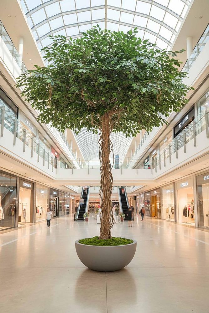 Make your space a verdant wonderland with our lifelike Ficus Exotica Giant Tree. Its tall and sturdy trunk boasts bark so lifelike, even Mother Nature might do a double-take. With an abundance of hypoallergenic lush foliage cascading from every branch, it's the ultimate statement piece for elevating any indoor setting, be it your grand hotel lobby, chic office atrium, or enchanting event space. Its biophilic design is known to improve mood and motivation, creating a serene and inviting atmosphere for all. Minimal assembly is required, and maintenance is as simple as a gentle dusting. Disclaimer: To assist you in selecting the right planter size, the diameter of the tree pot ranges from 15-30 cm. Please ensure your chosen pot, planter, or urn has a larger diameter. Additionally, please note that the height of the trees may vary depending on the tree leaves. If you need more precise guidance, feel free to contact us, and we’ll be happy to provide you with exact measurements and assist you further