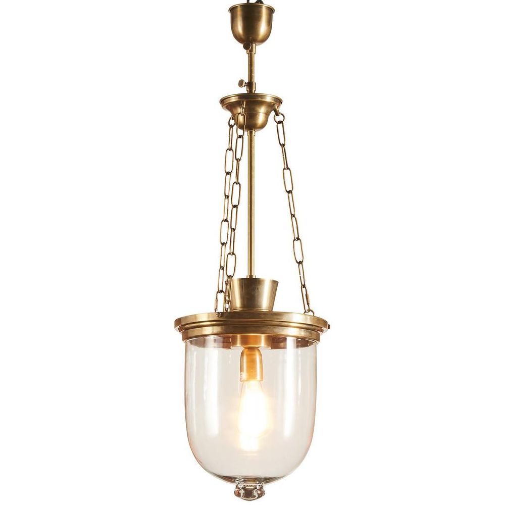 Our Ashford is clear glass hanging lamp with bell-jar shape and close brass lit, to add modern simplicity over kitchen islands or bars. Three matching colors chains are installed to weight the glass shade and make balance beside to give industrial look and feel fitting. Two colors are available, antique silver and brass. Truly gorgeous transparent glass shade which is significant point of this sleek modern fixture island. ADDITIONAL FEATURES • Standard Australian domestic fitting • Ceiling rose has a matching finish with the base • Lamp holder takes a standard E27 light bulb at 60 watt max Please note glass components are handmade and therefore small air bubbles, slight defects and colour variations may naturally occur during the glassblowing process. [download spec sheet]