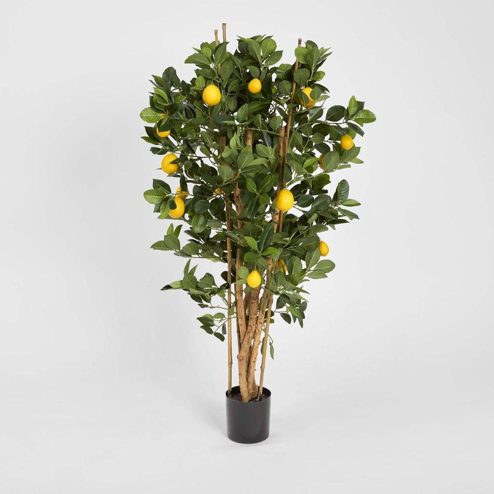 Add a zestful touch to your space with our artificial Lemon Tree, boasting glossy green leaves and vibrant yellow lemons. Embrace biophilic design for mood and motivation boost, minus the upkeep. No watering, fertilizers, or pruning needed – it's cost-effective and hypoallergenic. Plus, no assembly required; just dust with a static feather duster for forever freshness. Disclaimer: To assist you in selecting the right planter size, the diameter of the tree pot ranges from 15-30 cm. Please ensure your chosen pot, planter, or urn has a larger diameter. Additionally, please note that the height of the trees may vary depending on the tree leaves. If you need more precise guidance, feel free to contact us, and we’ll be happy to provide you with exact measurements and assist you further