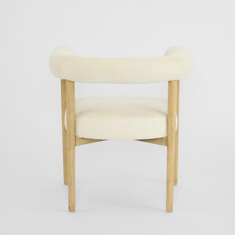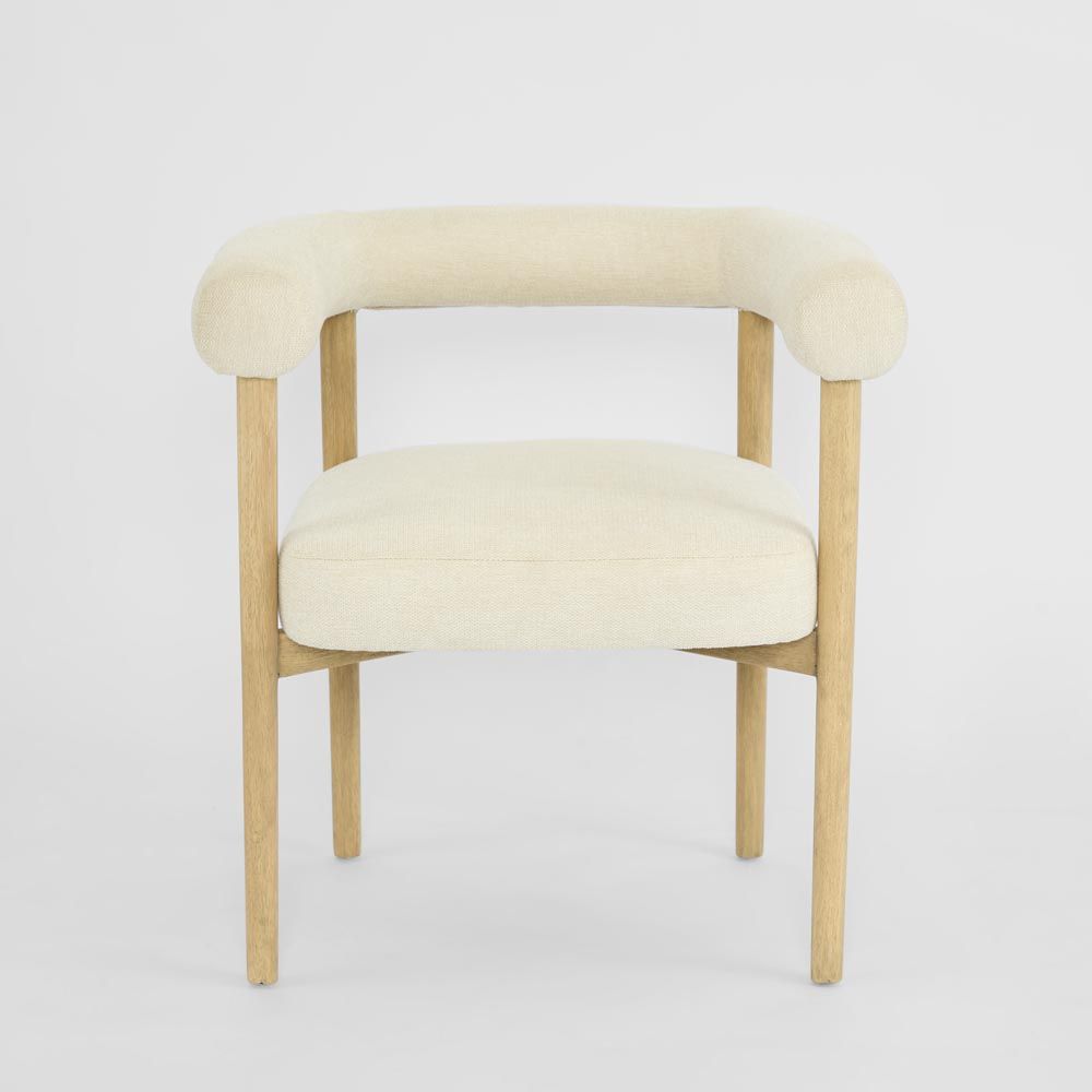 Dine in ultimate style and comfort with our Natural Manningham Dining Chair. This minimalist marvel flawlessly combines comfort with cool design, boasting a soft cushioned seat and a tubular cushion that seamlessly integrates both armrests and backrest. The muted color palette perfectly complements the sophisticated natural wooden legs, infusing your dining room with a touch of warmth and modernity.