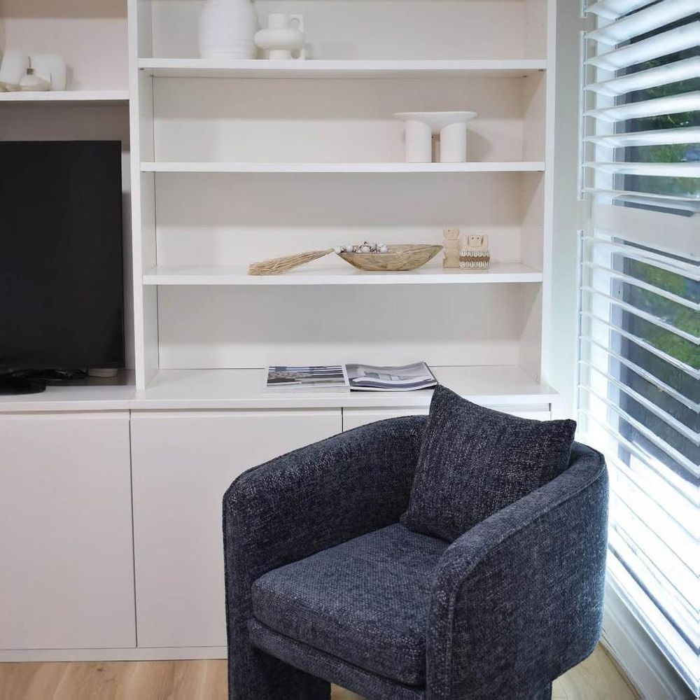 Unwind in unparalleled style with our Kennedy Armchair in Midnight Blue, a fusion of luxury and comfort. The well-tailored and uniquely designed seat, coupled with menswear-inspired upholstery, brings a high-fashion vibe to your living space. The cleverly constructed three-legged design not only adds flair but ensures stability, making it a perfect addition to your cozy reading nook or as a chic accent in your contemporary living room. Seat Height = 46cm