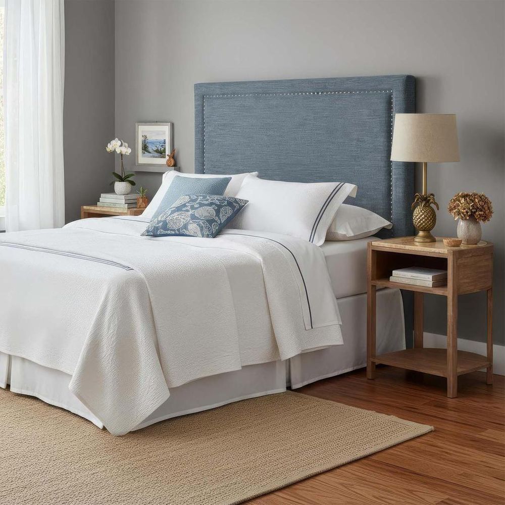 Bring a classic and sophisticated flair to your sleep sanctuary with our Lennox Queen Bedhead in Blue. Upholstered in linen fabric, this regal piece is adorned with delicate nailhead buttons tracing the sweeping frame. Perfectly fitting queen-sized beds, it brings an air of sophistication to any bedroom, whether against a neutral backdrop or as a statement against bold colors. Transform your sleep sanctuary with the classic charm of the Lennox Queen Bedhead, where sophistication reigns supreme.