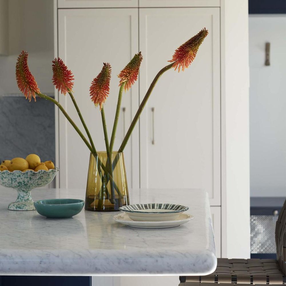 At the top of each faux stem sits the inflorescence, resembling a hot poker with its elongated shape and vibrant orange coloration. Each flower consists of multiple tubular florets clustered tightly together, creating a bold and fiery appearance reminiscent of its namesake. The stem itself is sturdy and slender, supporting the vibrant blooms and adding height and structure to any bouquet or display.