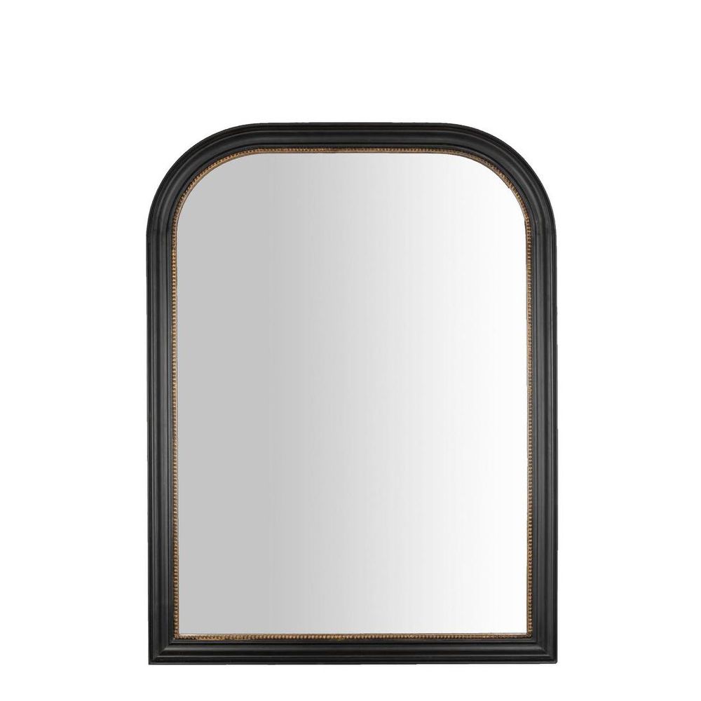Make every glance a work of art with Napoleon Mirror in Small Black. This arch mirror features striking black frame, tastefully adorned with touches of gold that adds a dash of antique allure. The beveled edges enhance its classical charm. Perfect for making a bold impression in your entryway, above a vanity, or gracing your living room wall, this mirror effortlessly blends sophistication with a hint of rebellion. Recommend Lighting Source : LED Only