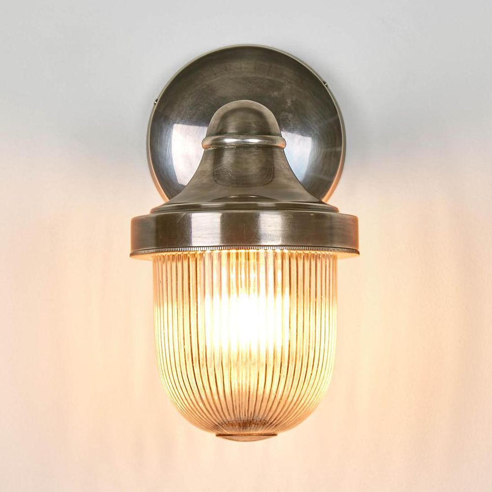 Our Jade Outdoor Wall Light Silver is an elegant and stylish lamp designed for outdoor use. The lamp has a classic and timeless design with a silver finish that adds a touch of sophistication to any outdoor space. The lamp measures 25cm in height, 13cm in width, and 13cm in depth, making it the perfect size for most outdoor walls. The lamp has a round shape with closed rib glass and it is made from brass metal to ensure durability and longevity. The Jade Outdoor Wall Light Silver features a clear glass diffuser that provides a bright and even light to illuminate your outdoor area. The lamp uses a single E27 light bulb, which is not included, allowing you to choose the brightness and color temperature that best suits your needs. The lamp is easy to install and comes with all the necessary hardware for a hassle-free installation. It is also weather-resistant, making it suitable for use in outdoor spaces exposed to rain and other elements. Overall, the Jade Outdoor Wall Light Silver is a beautiful and functional outdoor lamp that combines style and durability, making it a great addition to any outdoor space. ADDITIONAL FEATURES * The lamp holder takes E27 globe max 40w * IP-rated 54 certified suited for outdoor use * Standard Australian domestic fitting * Crafted from solid brass with seamless design [download spec sheet]