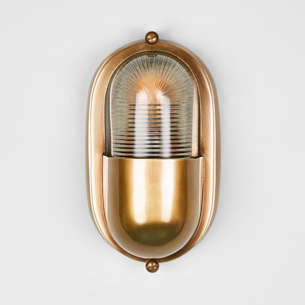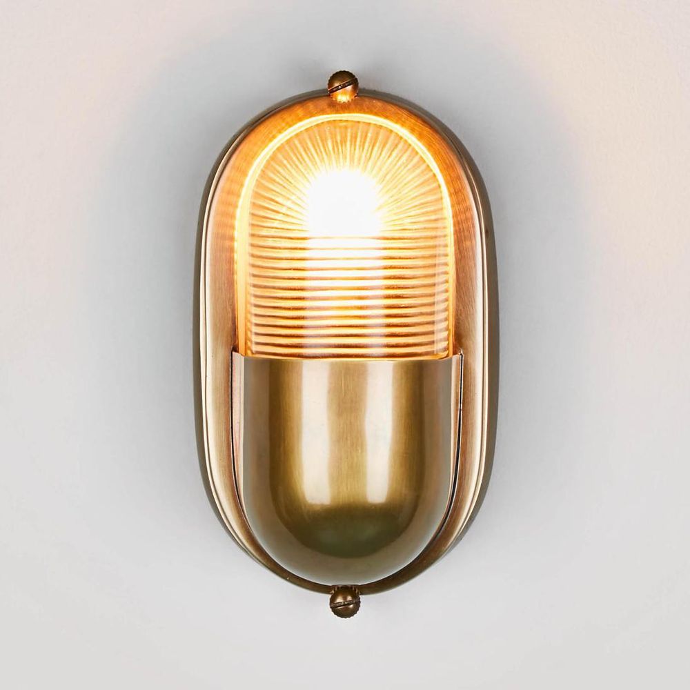 Our Anchor wall light is IP-rated 54 outdoor wall sconce with clear rib glass and brass metal cover, which suitable for indoor and outdoor use. The wall mount makes it perfect décor for outdoor garden lamp, patios and entryways. The light is well built and solid, also anti-rust. It can also be installed vertically or horizontally position. With sleek appearance, it can also be used in bathroom as side mirror lights to match any industrial, rustic or loft-style décor. ADDITIONAL FEATURES * The lamp holder takes E14 globe max 40w * IP-rated 54 certified suited for outdoor use * Standard Australian domestic fitting * Crafted from solid brass with seamless design [download spec sheet]