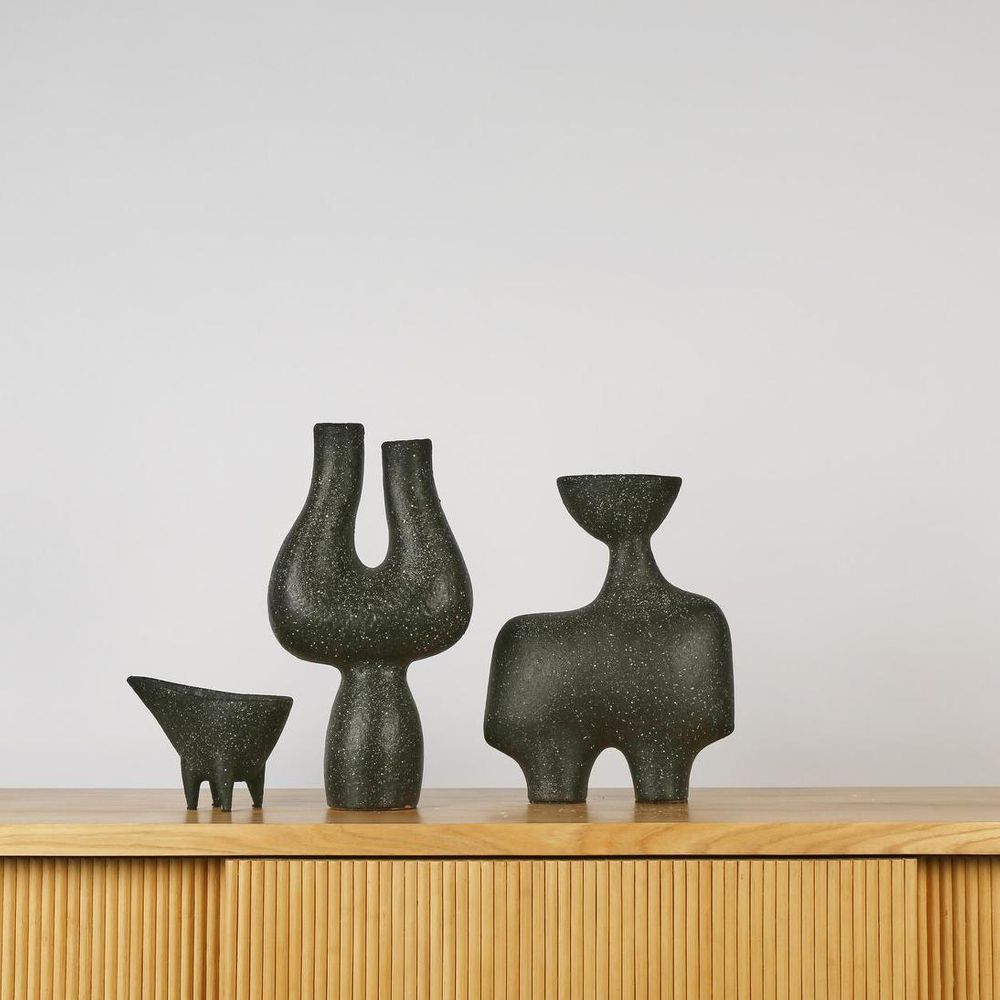 Why settle for a mere vessel when you can showcase a sculptural masterpiece with our Low Moore Vase in Charcoal. Crafted from stoneware with unique volcanic glazes, this piece boasts a perfectly imperfect allure, with a textured surface and captivating variations in black and white hues. Whether adorning your mantlepiece as a standalone statement or filled with dried or faux botanicals, this hand-glazed vase promises to command attention and elevate your decor with its striking presence. non-vitrified/porous