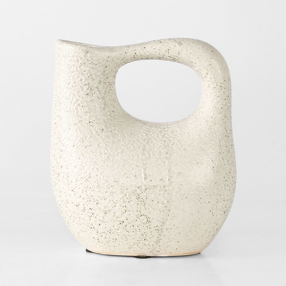 Enchant onlookers and elevate your decor with our Small Yves Vessel in Chalk. This minimalist masterpiece showcases a rounded base, an elongated neck, and an elegantly extended handle, seamlessly merging the realms of vase and sculpture. Whether gracing a mantle, adorned with fresh blooms, or nestled within a curated vignette on a side table, this vessel emanates subtle sophistication, accentuating your modern design sensibilities. Water-resistant, however, due to the handmade nature and characteristics of the materials, complete waterproofing cannot be guaranteed.