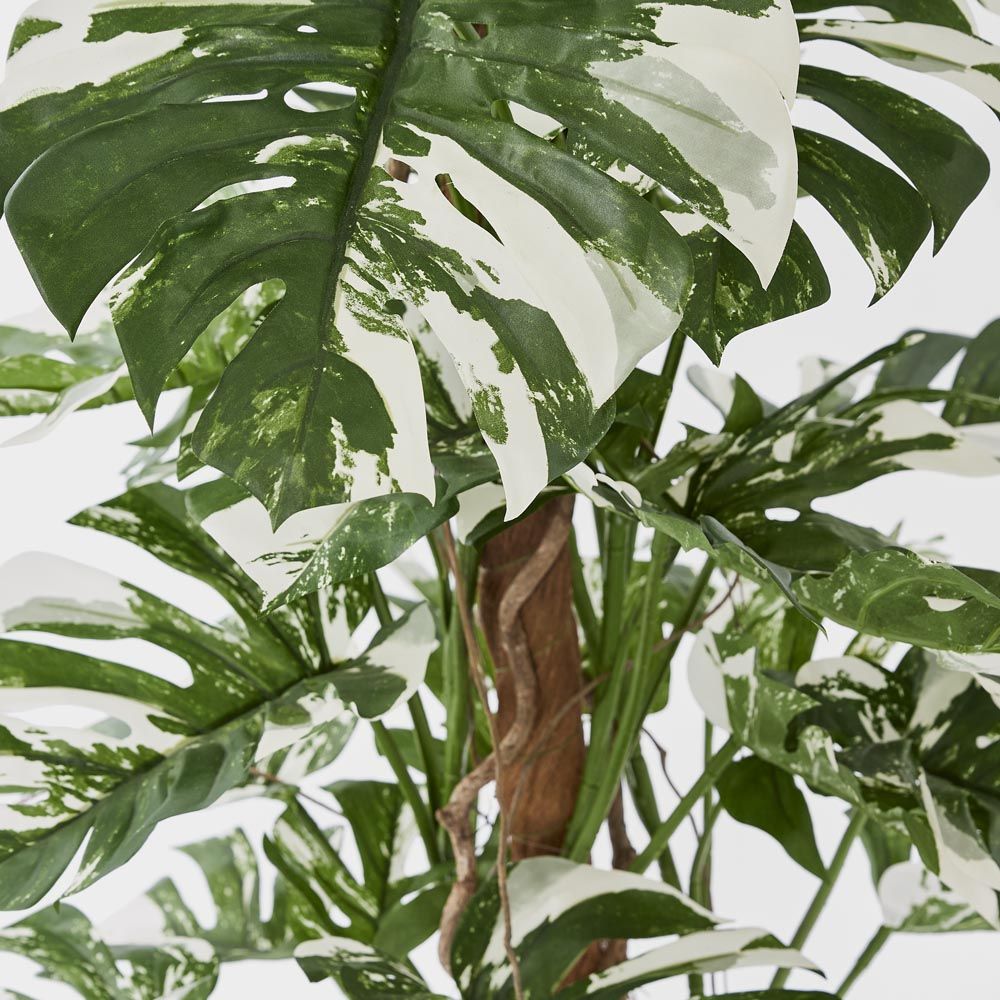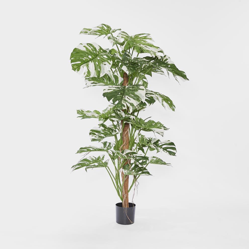 Meet the showstopper of greenery, our artificial Variegated Split Philodendron. Its vibrant leaves enhance any space while uplifting mood and motivation. With low maintenance and hypoallergenic properties, it's a practical and cost-effective choice. No watering, fertilizers, or pruning needed. Simply dust with a static feather duster to maintain its allure and freshness. Placed in a sleek black pot, it adds a touch of tropical elegance to any setting, from living rooms to offices and patios.