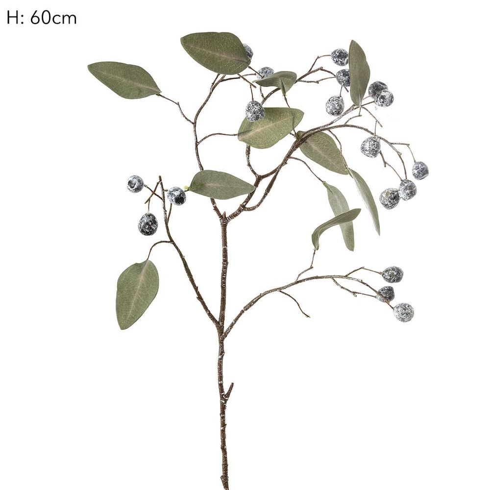 Add a playful pop of nature to your decor with our artificial Eucalyptus and Berries Spray. Featuring soft green leaves and dark berries on slender branching stems, this whimsical spray brings a touch of the outdoors inside. With advanced technology ensuring lifelike realism, you'll forget they're not the real deal. They're long-lasting, hypoallergenic, and low maintenance, no need to worry about wilting or unpleasant odors. Simply dust with a static feather duster to keep them looking fresh and fabulous. Whether adorning a vase on your dining table, adding flair to a wreath, or sprucing up your office space, this spray is sure to charm all who behold it.