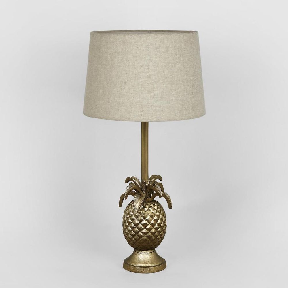 Our Pineapple table lamp has been very popular and become a symbol of hospitality in a sense of welcoming. The spiked leaves add eye-catching appeal to the detailed pineapple base. Two colours are available which are antique silver and brown. Lamp shade that suit for silver base is black or off white linen. For the brown colour, the base will match with natural linen shade. ADDITIONAL FEATURES * The lamp holder takes E27 globe max 40w * Standard Australian domestic fitting * Switch on and off is located on the lamp holder Please note lamp shade is sold separately [download spec sheet]