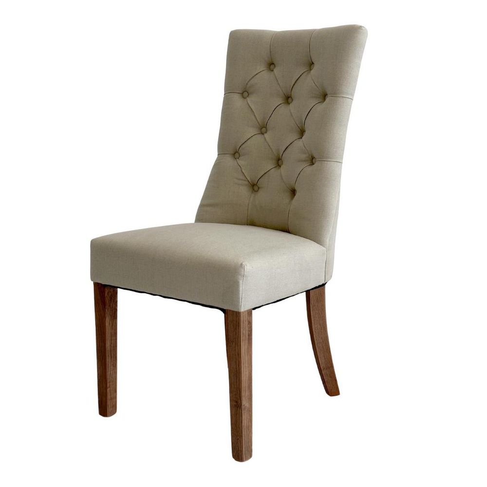 Diana Buttoned Hamptons Dining Chair Beige Linen Blend