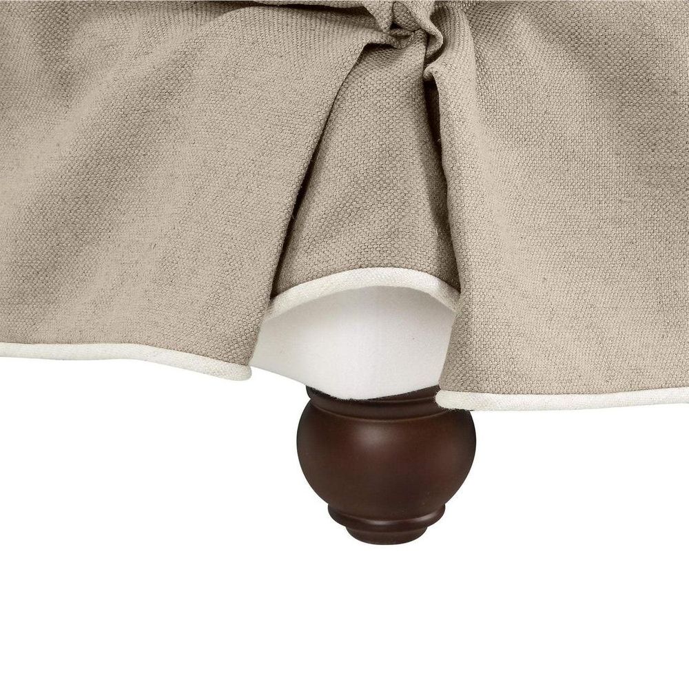 Upgrade your ottoman game with the Ottoman Slip Cover in Natural with White Piping. Designed for the bustling hub of a busy family, its removable covers ensure effortless upkeep, while minimal assembly means more time to kick back and relax. The luxurious fabric and a loose skirt design effortlessly enhance the look and feel of your favorite relaxation spot. Simply pair it with the Noosa Ottoman Base for a touch of elegance and functionality that seamlessly blends into any living space.