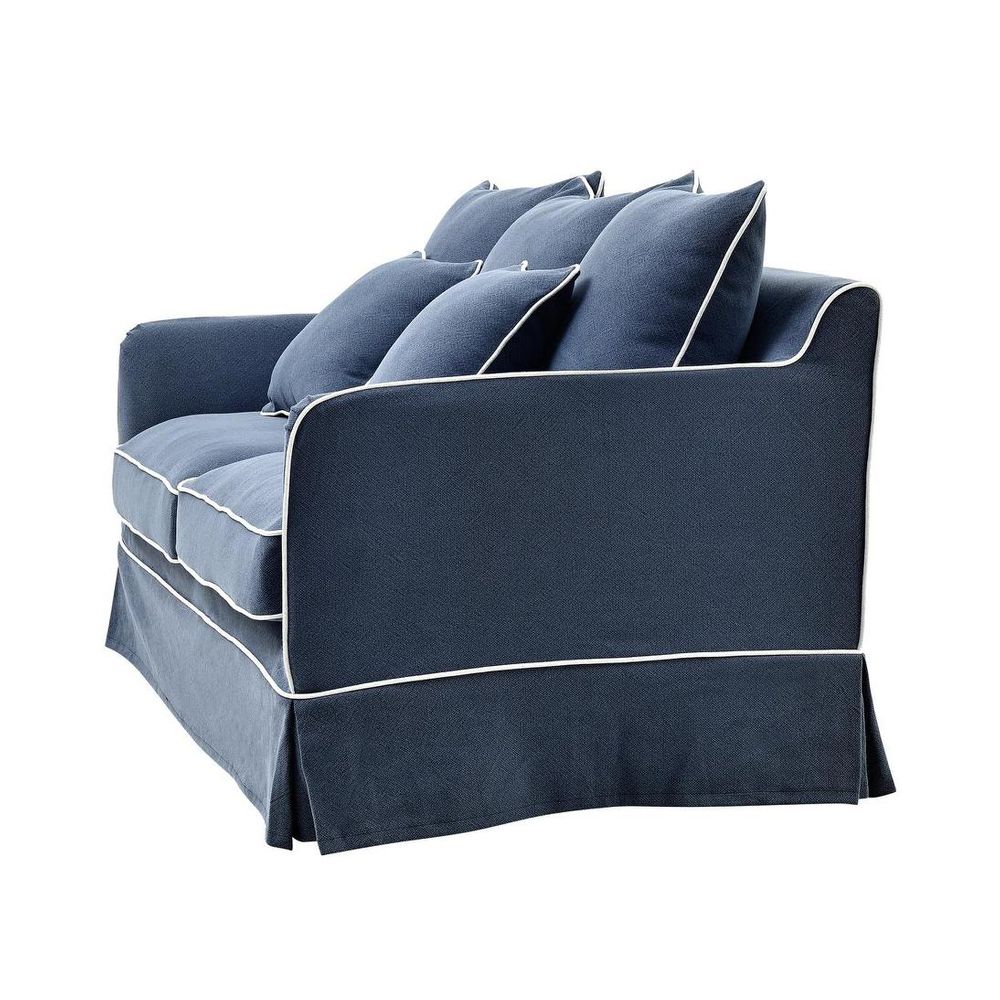 Slip Cover Only - Noosa Hamptons 1.5 Seat Sofa Navy W/White Piping
