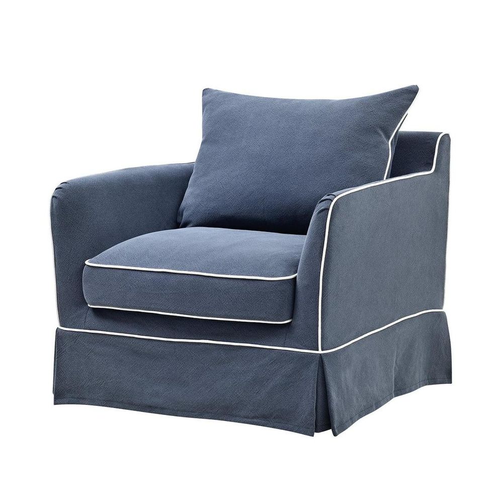 Slip Cover Only - Noosa Hamptons Armchair Navy W/White Piping