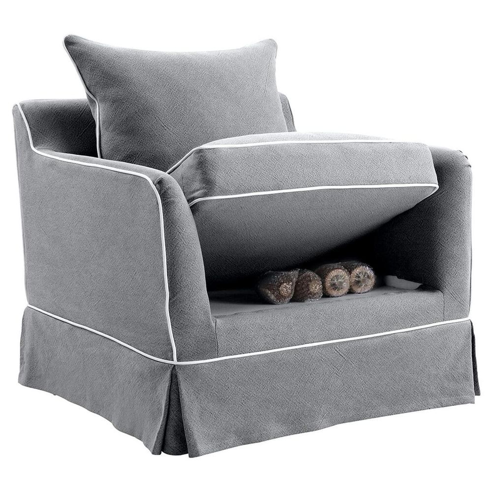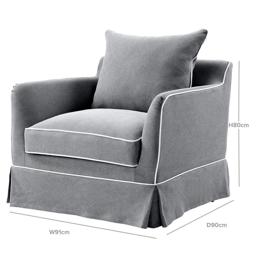 Slip Cover Only - Noosa Hamptons Armchair Grey W/White Piping